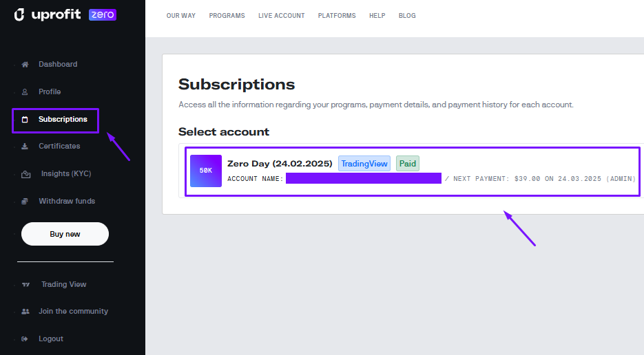 1️⃣ Va dans tes abonnements et sélectionne ton compte.
