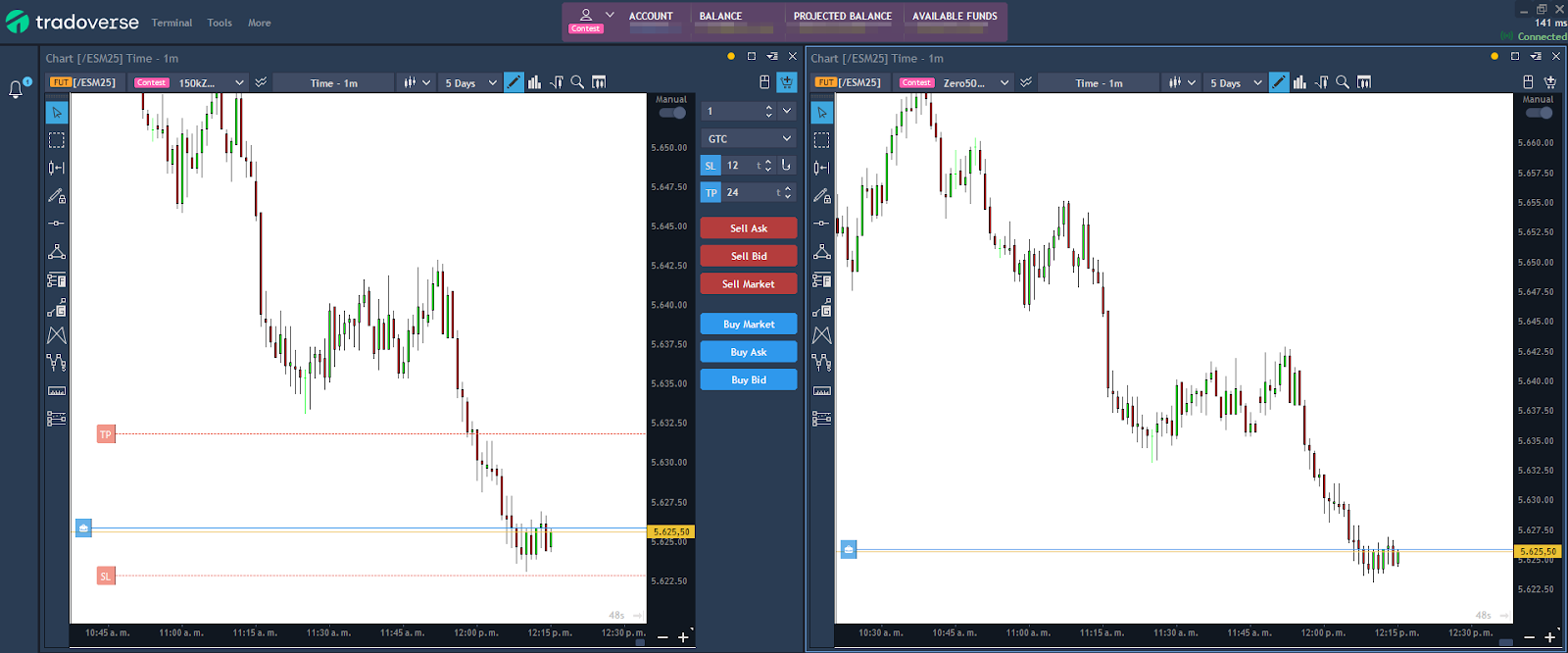 5️⃣Your configured ATM will show up on the main account, but won't appear on the account where the trade is being replicated - don't worry though, the trade will close at your configured TP or SL.
